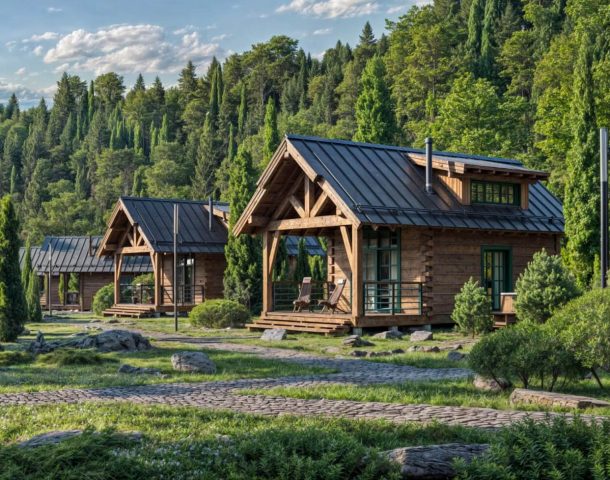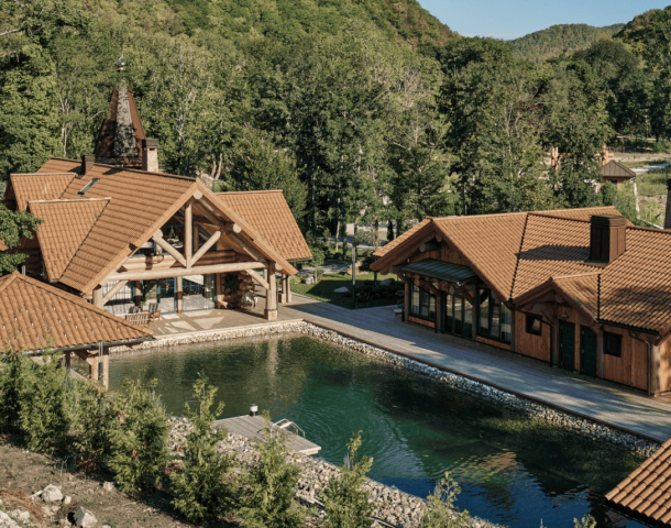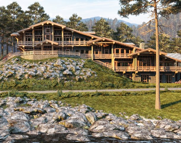 камня в сочетании с деревом